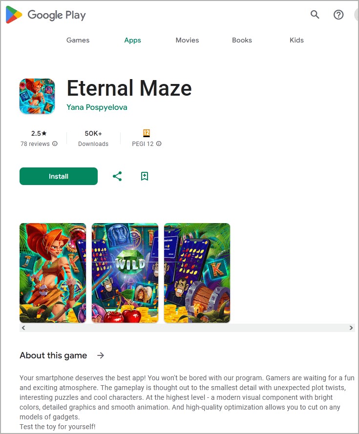 - Eternal Maze (Yana Pospyelova) – 50,000 downloads