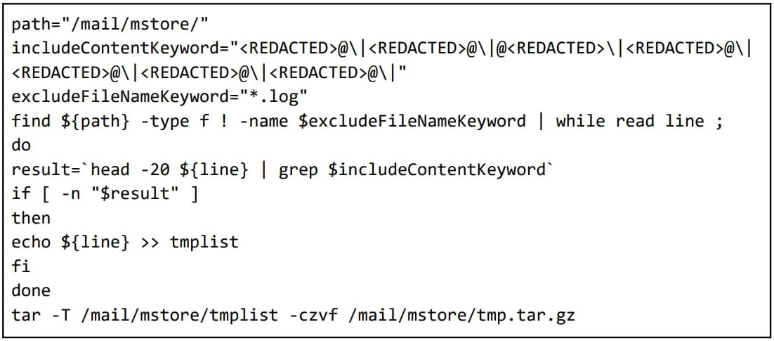 "In the set of entities selected for focused data exfiltration, shell scripts were uncovered that targeted email domains and users from ASEAN Ministry of Foreign Affairs (MFAs), as well as foreign trade offices and academic research organizations in Taiwan and Hong Kong," explained Mandiant.