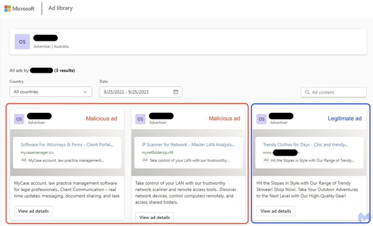 The malvertizing campaign was created by someone who hacked into the ad account of a legitimate Australian business to create two malicious ads targeting system admins (IP scanner) and lawyers (MyCase law manager).
