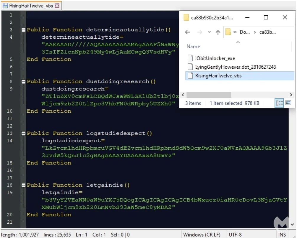 The downloaded MSI installer contains three files, one of which is a heavily obfuscated malicious script that connects to an external resource to retrieve the payload.
