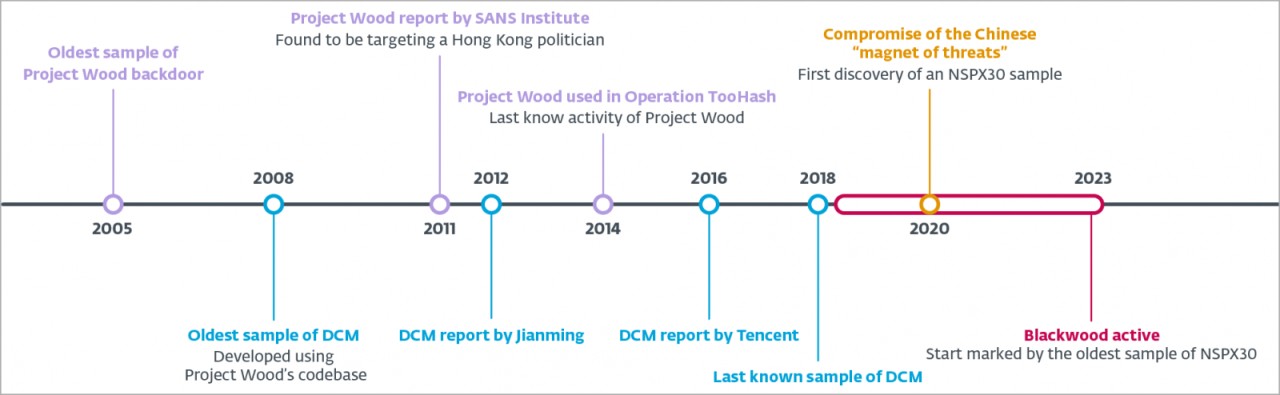 Researchers at cybersecurity company ESET discovered Blackwood and the NSPX30 implant in a campaign in 2020 and believe that the group's activities align with Chinese state interests.