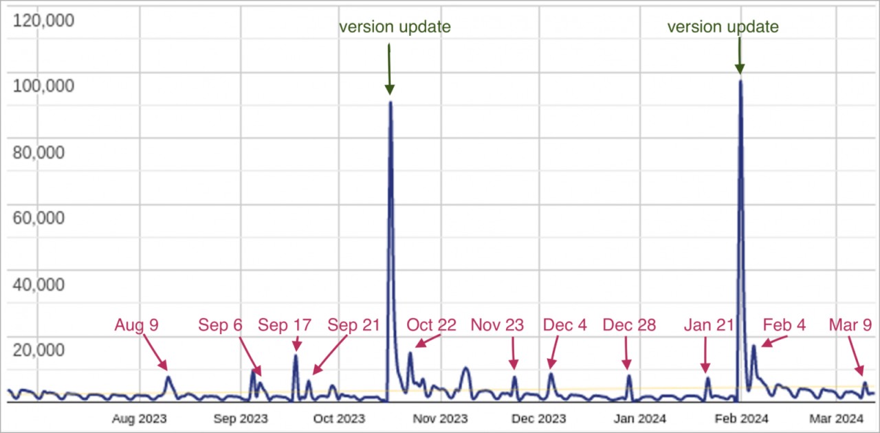 In the past six months, Sucuri's scanners detected the malware on over 39,000 websites, while the latest attack wave, which has been underway since January 2024, has claimed 2,500 sites.