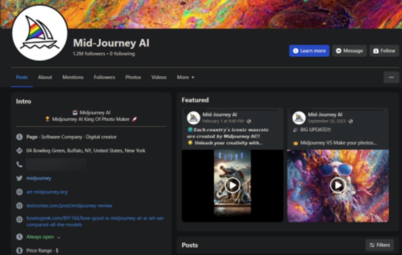 The page wasn't created from scratch; instead, the attackers hijacked an existing profile in June 2023 and converted it to a fake Midjourney page. Facebook shut down the page on March 8, 2024.