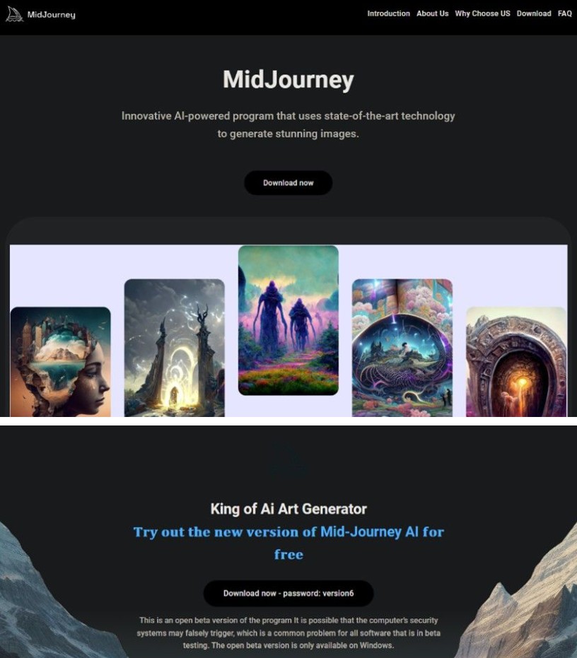 Instead of using Dropbox and Google Drive links to host the payloads, the operators of this campaign set up multiple sites that cloned the official Midjourney landing page, tricking users into downloading what they thought was the latest version of the art-generating tool via a GoFile link.