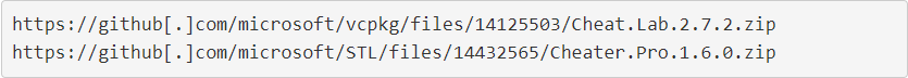 Finding it strange that a Microsoft repo would be distributing malware since February, it was found that the files are not part of vcpkg but were uploaded as part of a comment left on a commit or issue in the project.