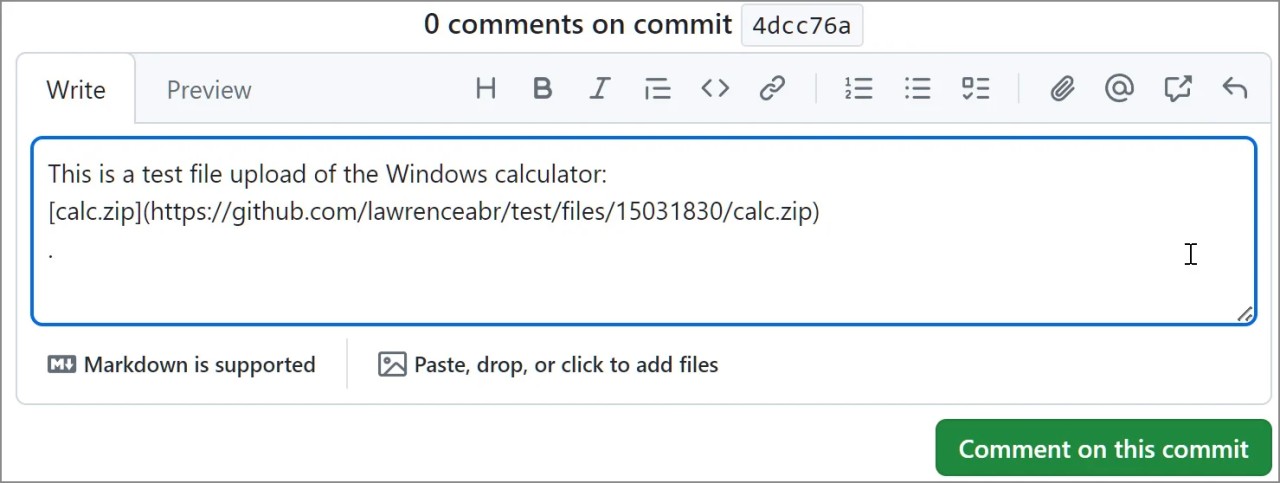 Instead of generating the URL after a comment is posted, GitHub automatically generates the download link after you add the file to an unsaved comment, as shown below. This allows threat actors to attach their malware to any repository without them knowing.
