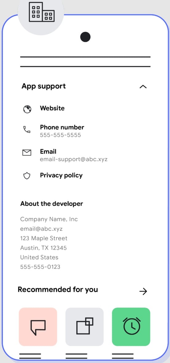 In addition to the above, Google will change the "Contact details" section of app entries on the Play Store, renaming it to "App support" and adding more information about the developer.