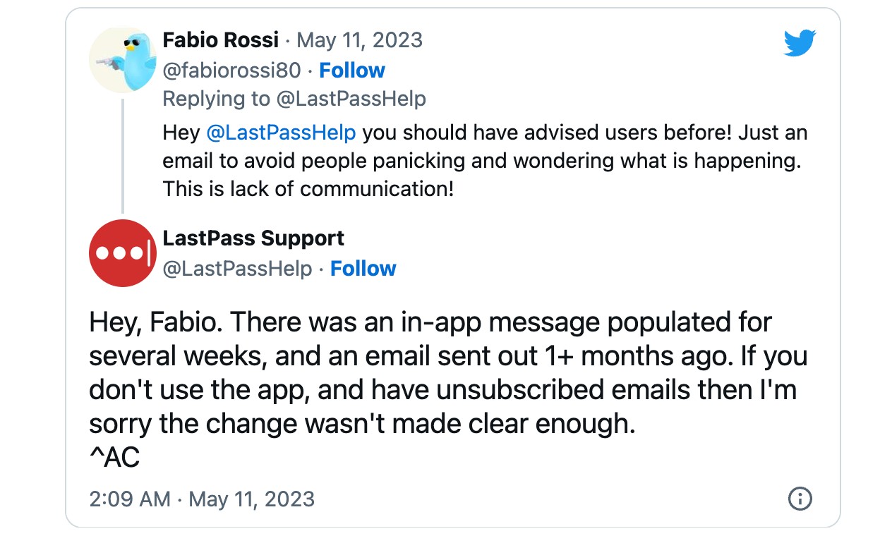 LastPass says the MFA resets were announced via in-app messages for "several weeks" before the initial announcement.