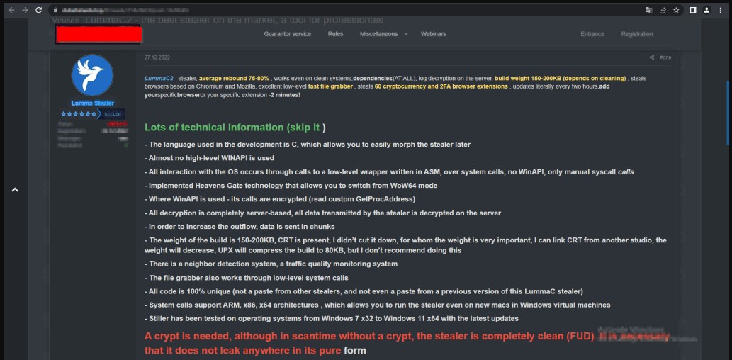 Another interesting development concerning the Lumma operation is the requirement to use a crypter to protect the malware executable from leaking to non-paying hackers and threat analysts.