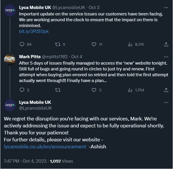 Lyca Mobile's statement about the incident and the effect it caused is no longer available at the address specified by a company representative.