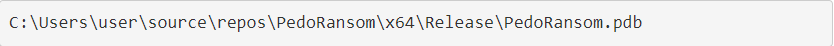 The malware executable is packed with UPX, but when unpacked, it contains a PDB string that indicates that the author called the malware "PedoRansom".