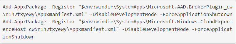 - Run the commandlets below in user mode PowerShell to repair WAM (more context in the Fix authentication issues in Office applications when you try to connect to a Microsoft 365 service article):