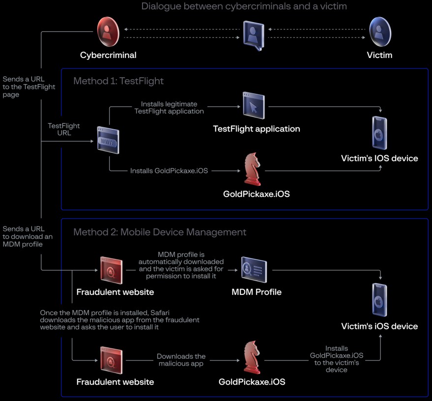 When Apple remove the TestFlight app, the attackers switched to luring targets into downloading a malicious Mobile Device Management (MDM) profile that allows the threat actors to take control over devices.