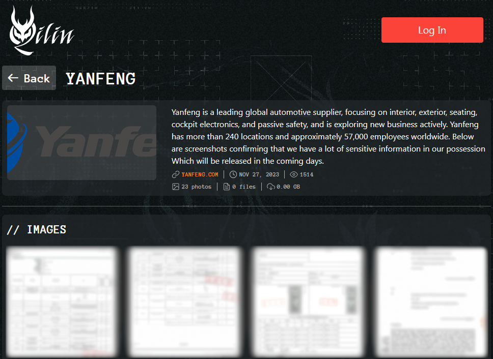 The Qilin ransomware group has claimed responsibility for a cyber attack on Yanfeng Automotive Interiors (Yanfeng), one of the world's largest automotive parts suppliers.