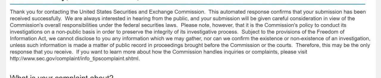 To show that their complaint is real, ALPHV published on their site a screenshot of the form they filled out on SEC's Tips, Complaints, and Referrals page.