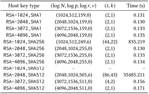 The researchers note that their tests do not include results "for RSA-1024,SHA512 because the number of unknown bits in the hash is well beyond what we can brute force or solve with lattices."