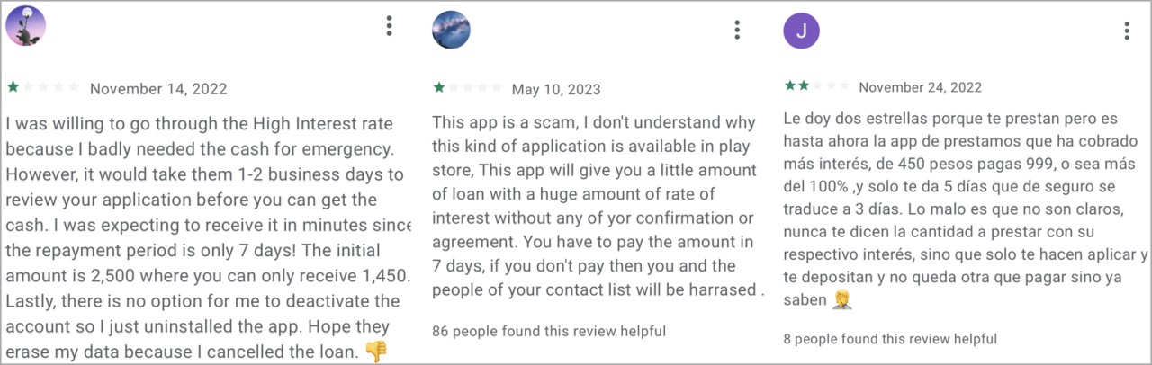 They pose as legitimate financial services for personal loans that promise "quick and easy access to funds." However, they trick users into accepting high-interest payments and then the threat actor blackmails victims into paying the money.