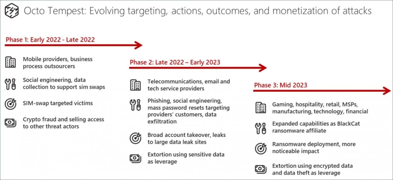 Scattered Spider, also known as 0ktapus, Starfraud, UNC3944, and Muddled Libra, is adept at social engineering and relies on phishing, multi-factor authentication (MFA) bombing (targeted MFA fatigue), and SIM swapping to gain initial network access on large organizations.