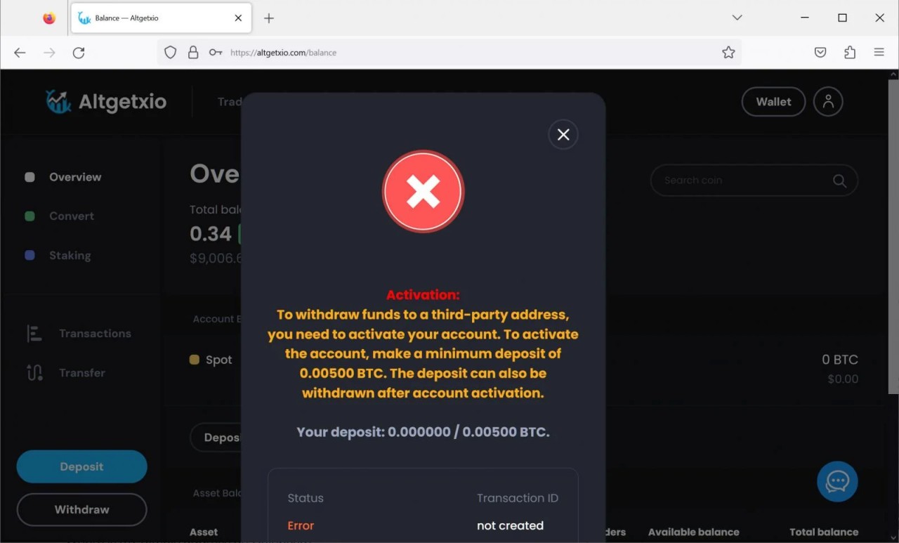 For example, the scam site below pretended to deposit .34 Bitcoin into my wallet, worth approximately $9,000.