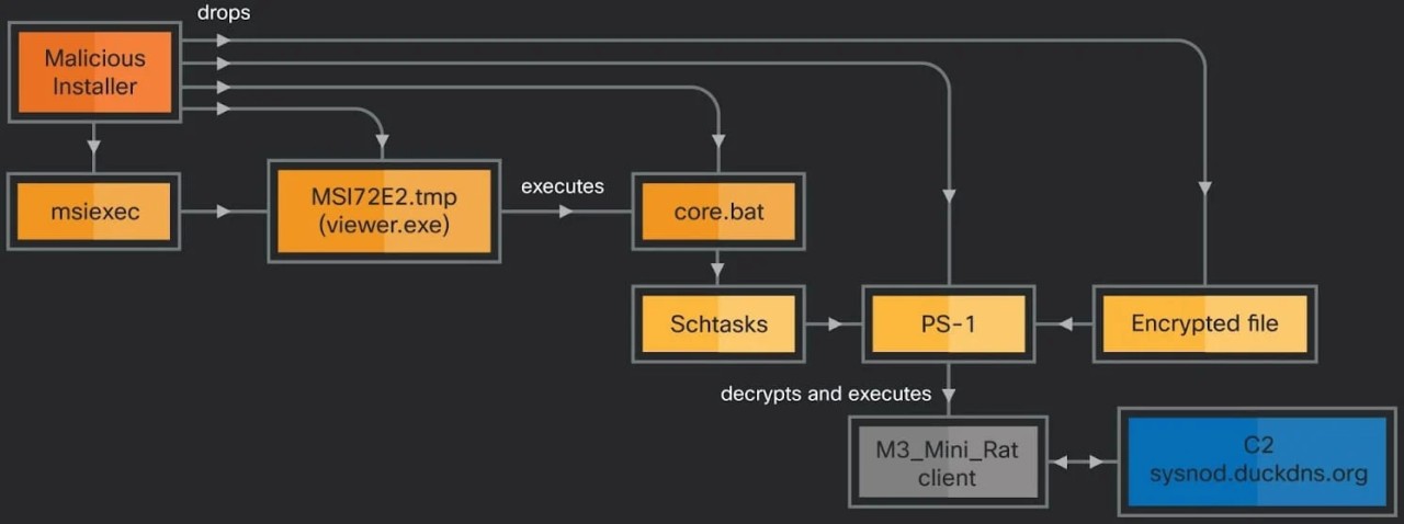 The M3_Mini_Rat payload gives the attackers remote access capabilities, enabling them to perform system reconnaissance and install additional payloads on the infected system.